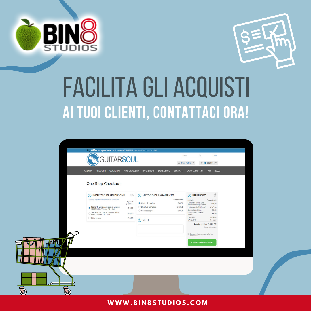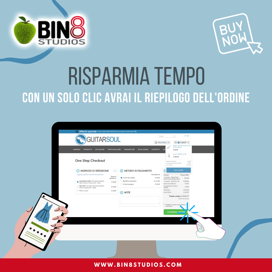 Disponibile la versione aggiornata del nostro modulo #ecommerce che, con la nuova funzione “one step checkout”, permette all’utente di acquistare in maniera semplice e veloce con un solo click.
