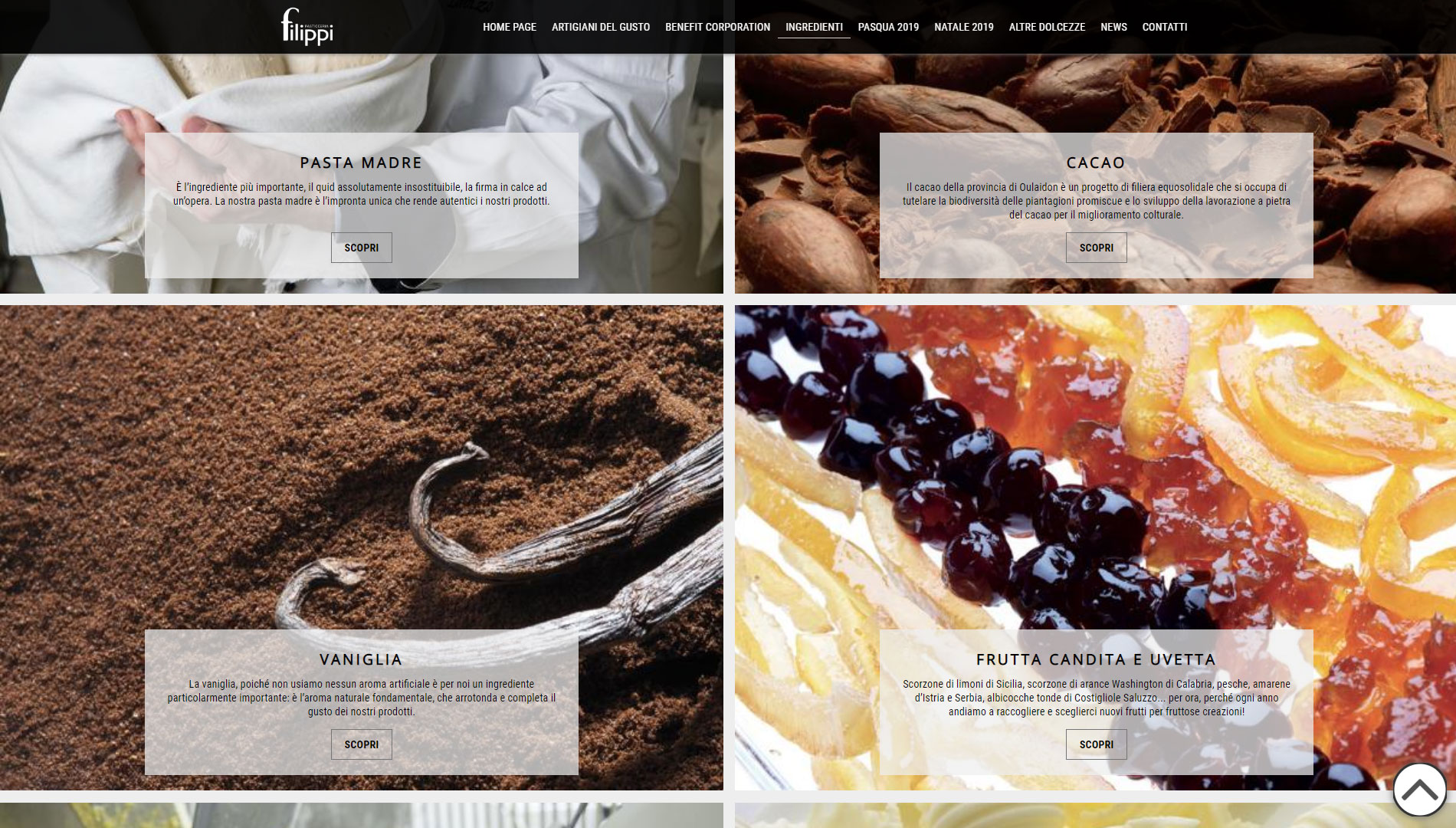 Il sito web che siamo andati a sviluppare doveva rispecchiare e trasmettere all'utente quei valori legati all'artigianalità del prodotto, alla famiglia, alla genuinità e alla passione che ogni giorno Filippi mette nei propri prodotti.