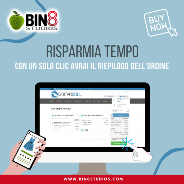 Disponibile la versione aggiornata del nostro modulo #ecommerce che, con la nuova funzione “one step checkout”, permette all’utente di acquistare in maniera semplice e veloce con un solo click.