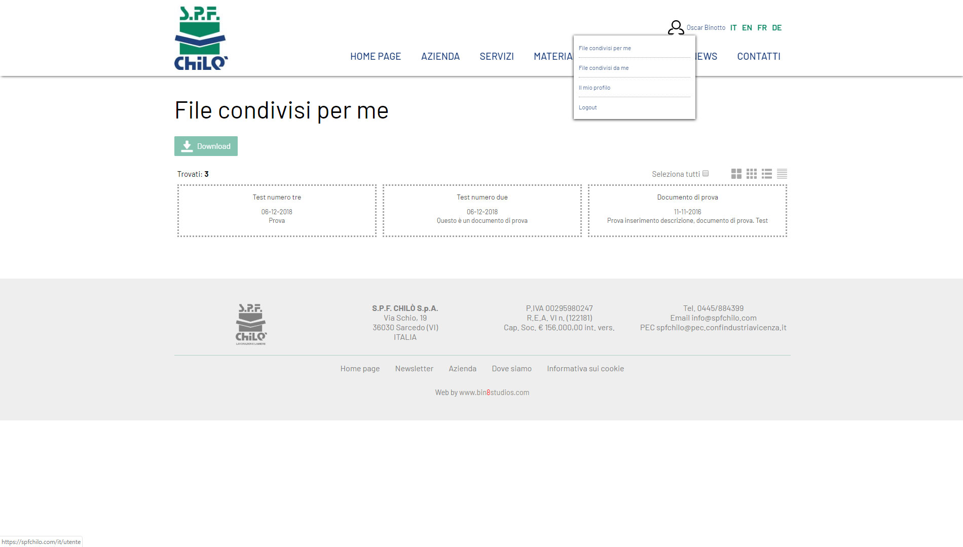 L'esigenza in questo caso era quella di poter presentare l'azienda in maniera chiara e con un impatto visivo ottimale e, al tempo stesso, di offrire ai clienti di Spf una piattaforma che permettesse loro di reperire i documenti necessari direttamente
