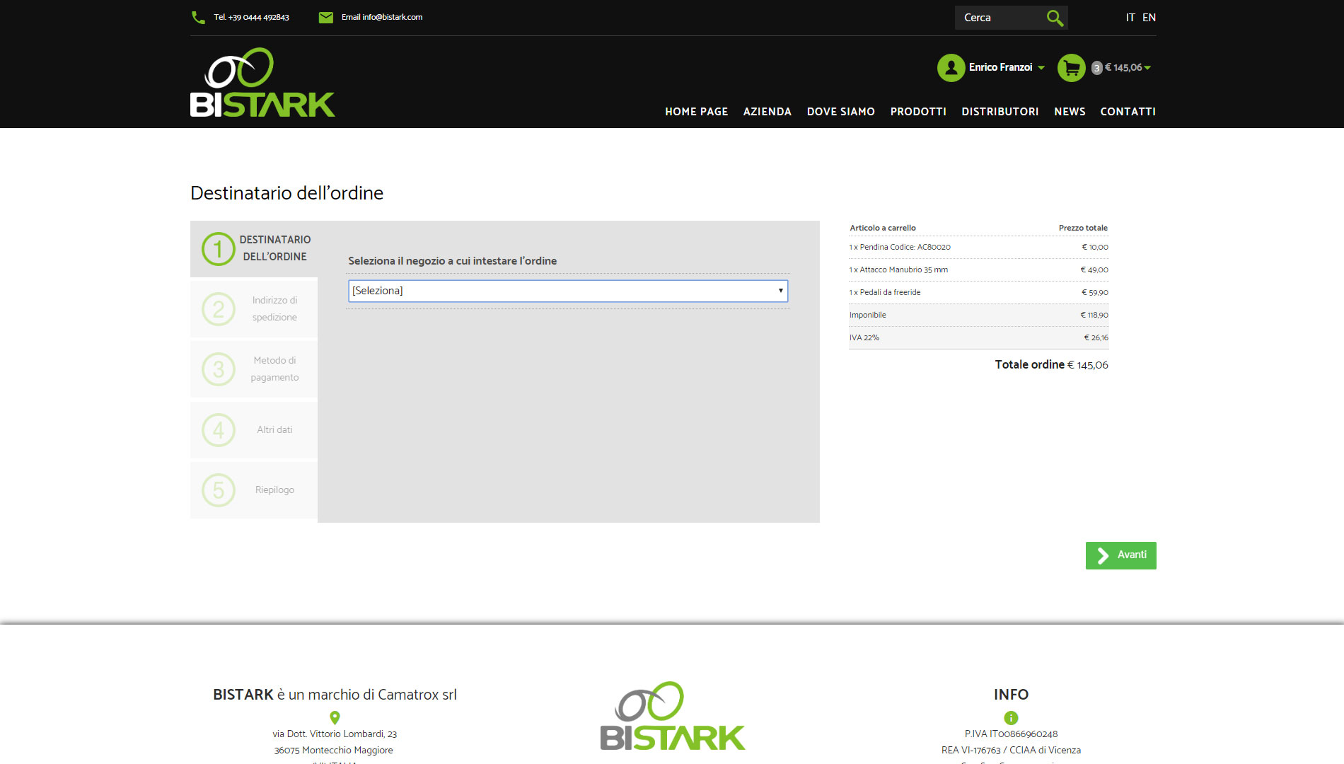 Abbiamo quindi sviluppato un sistema completo e complesso, composto da una piattaforma di e-commerce tradizionale per la vendita on line, e da diverse tipologie di utenti e di profili, che permettono al negoziante di eseguire gli ordini real time visualizzando le disponibilità di prodotto presenti a magazzino e all'agente di eseguire in maniera rapida ed ordinata gli ordini a nome di un dato negozio.