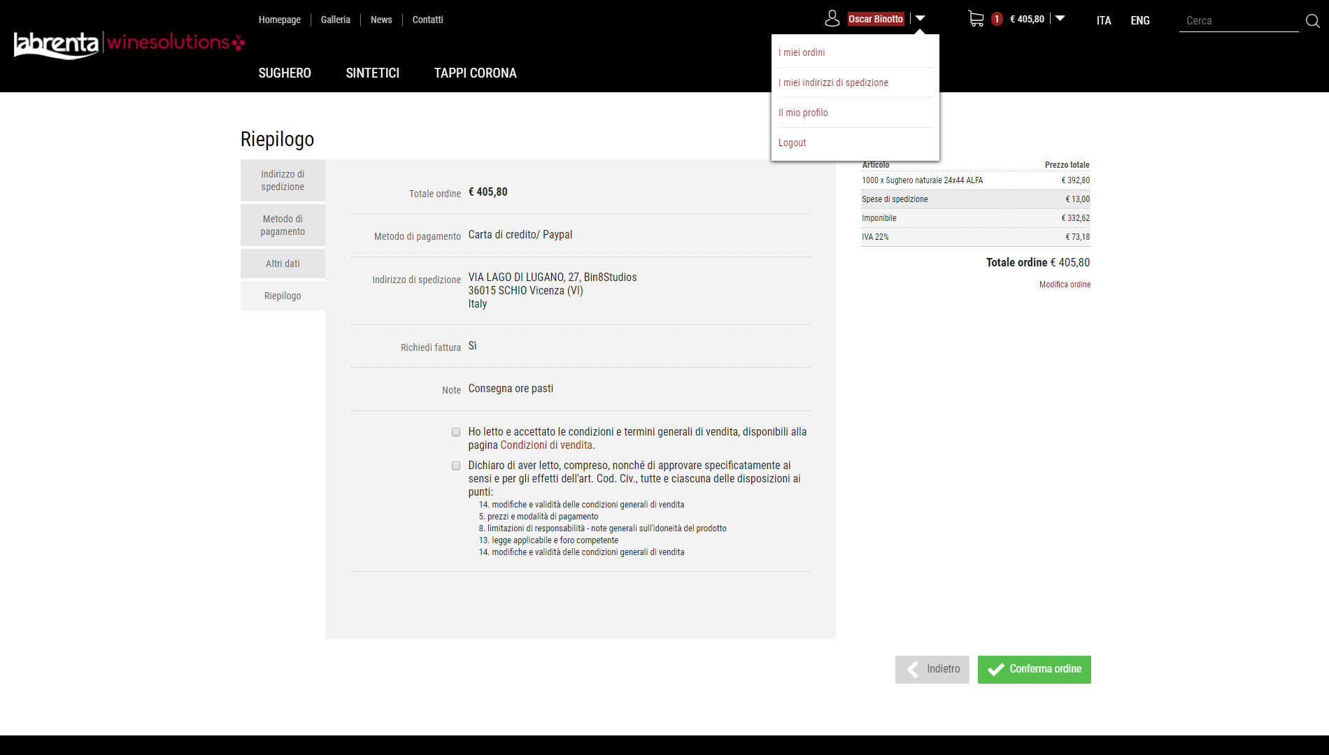 A seguire tutti i classici passi per l'acquisto on line con una particolare gestione dei tempi di consegna, dove il prezzo varia in base all'urgenza della consegna.